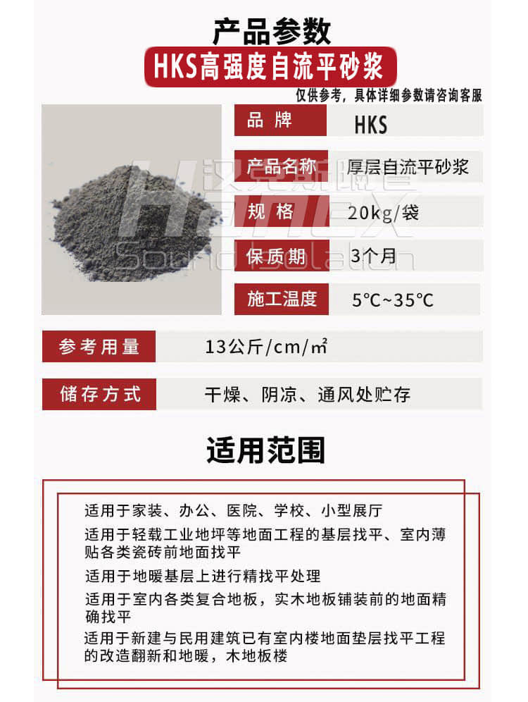 高強度自流平砂漿是一種新型的樓板保溫找平一體系統和地暖回填材料。它以水泥、高強水泥、石膏復合做為膠凝材料,添加微晶、級配骨料、填充料、可再分散乳膠粉、及各種高分子功能添加劑等混合而成,是一款新拌時流動性好,早期強度高,施工方便,平整度高,不易開裂的新型材料。該材料可同時做為樓板保溫層與面層。