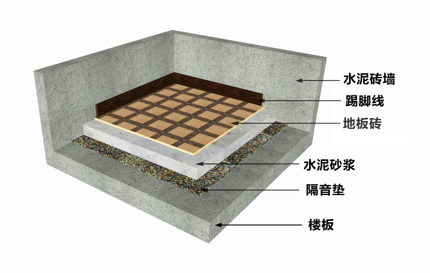 在隔音層上鋪設裝飾面層,如瓷磚、地板等,根據需要選擇合適的材料和顏色。