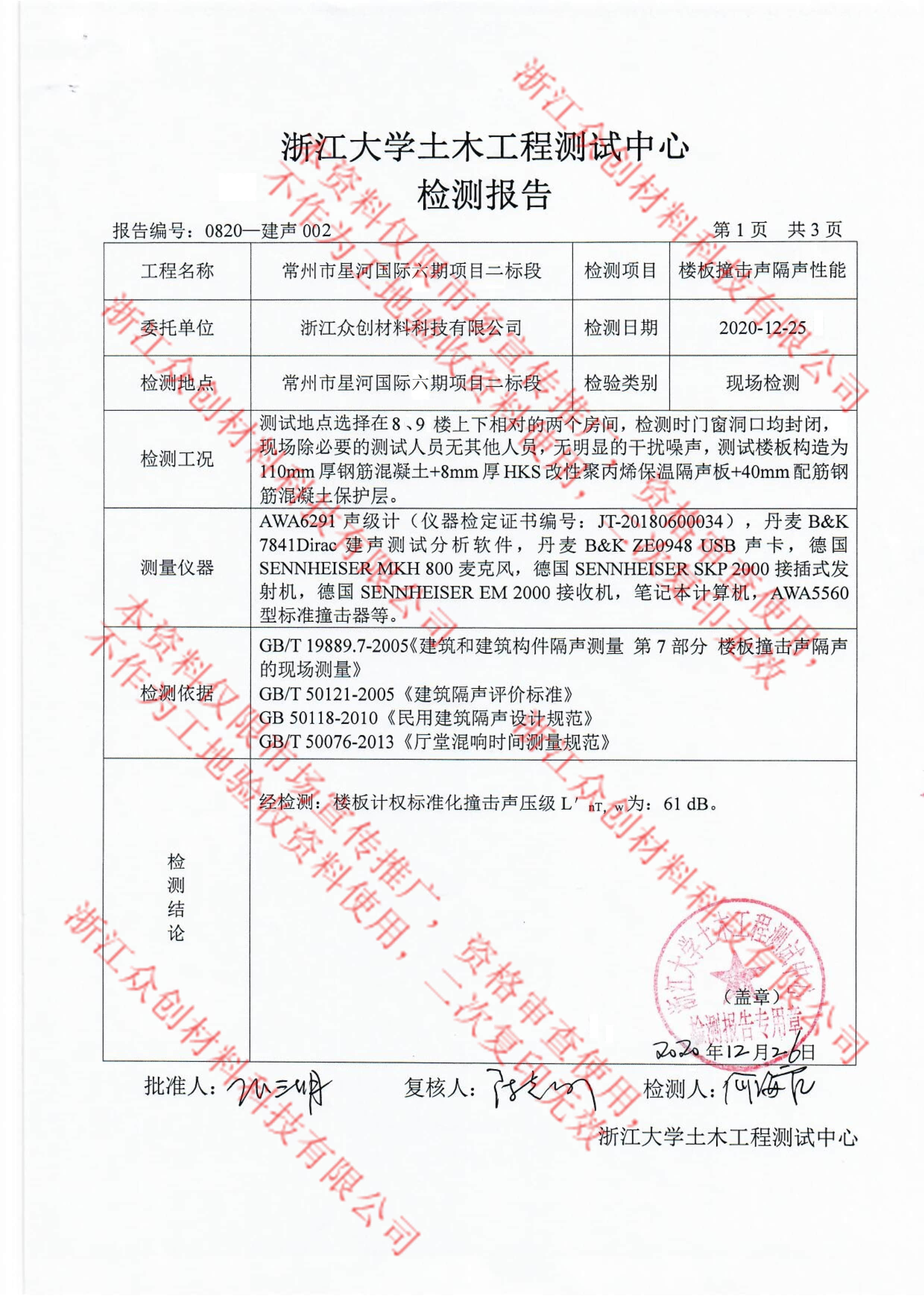 根據(jù)測(cè)試在同等隔音效果下,HKS改性聚丙保溫隔聲板厚度更薄,占用層高更少,撞擊隔聲改善到62dB。